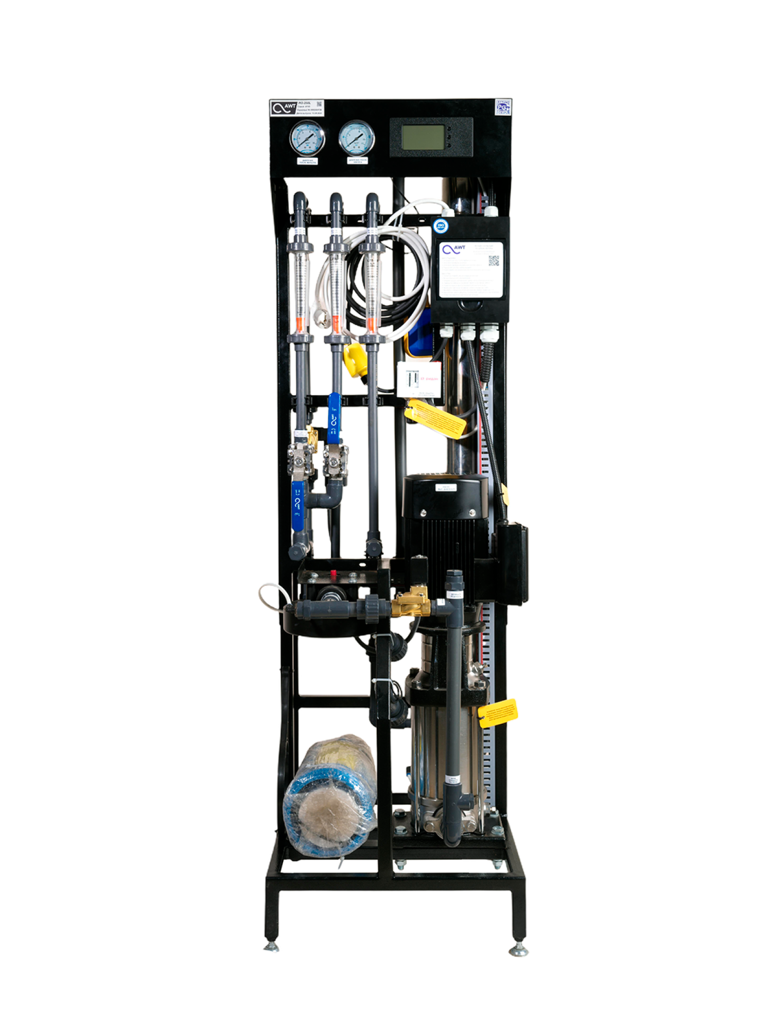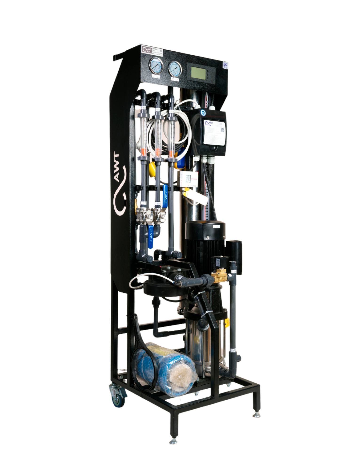 Коммерческие системы обратного осмоса серии AWT RO предназначены для глубокой доочистки воды хозяйственно-питьевого назначения, а также природных вод. Обеспечивают снижение общей минерализации, удаление солей жесткости, тяжелых металлов, органических веществ, бактерий и вирусов. Качество очищенной воды соответствует нормам СанПиН 1.2.3685–21.Типичная конверсия для подземной и поверхностной воды пресного типа составляет от 60% до 75% (соотношение пермеат : концентрат от 3:2 до 3:1)