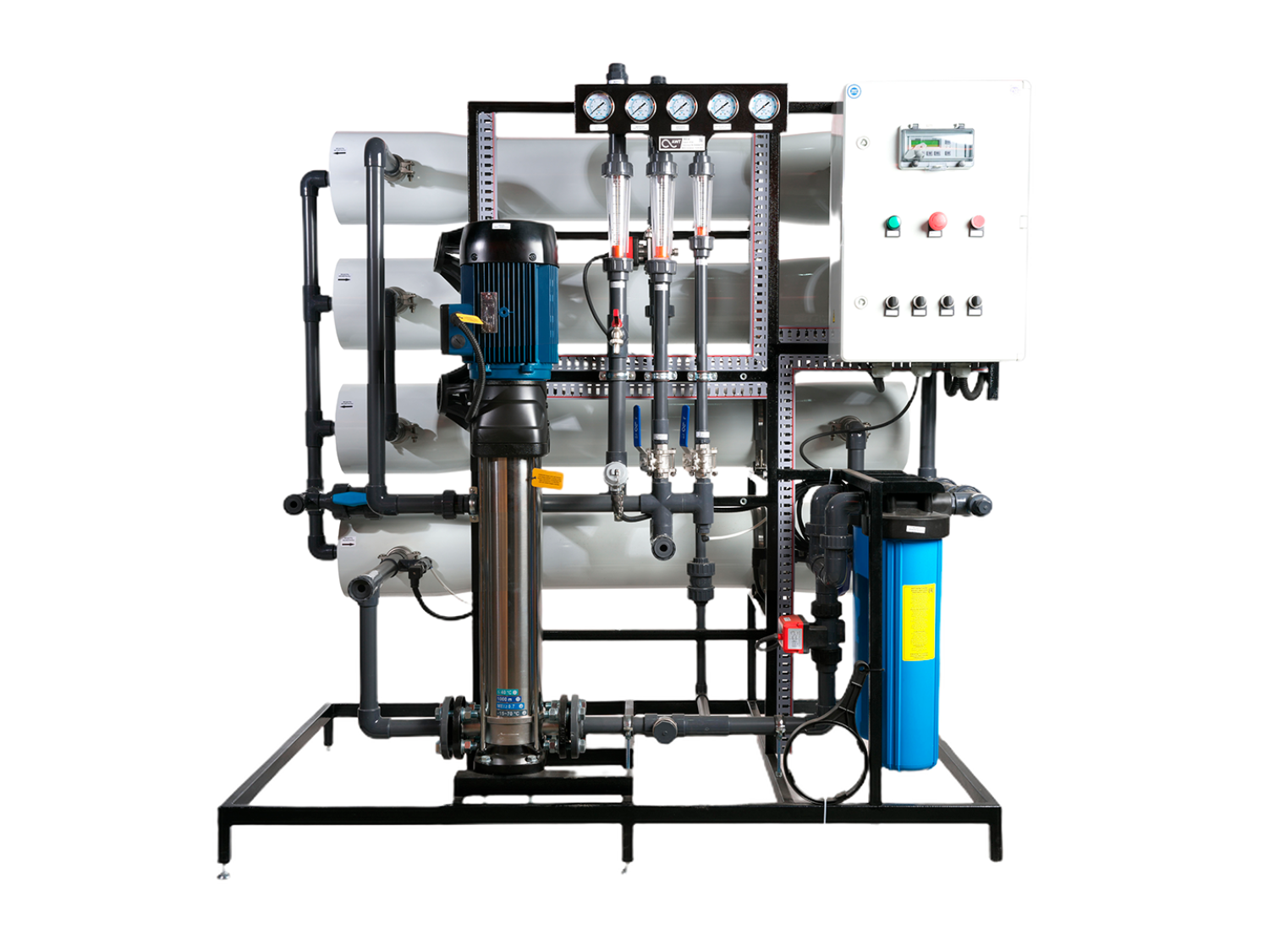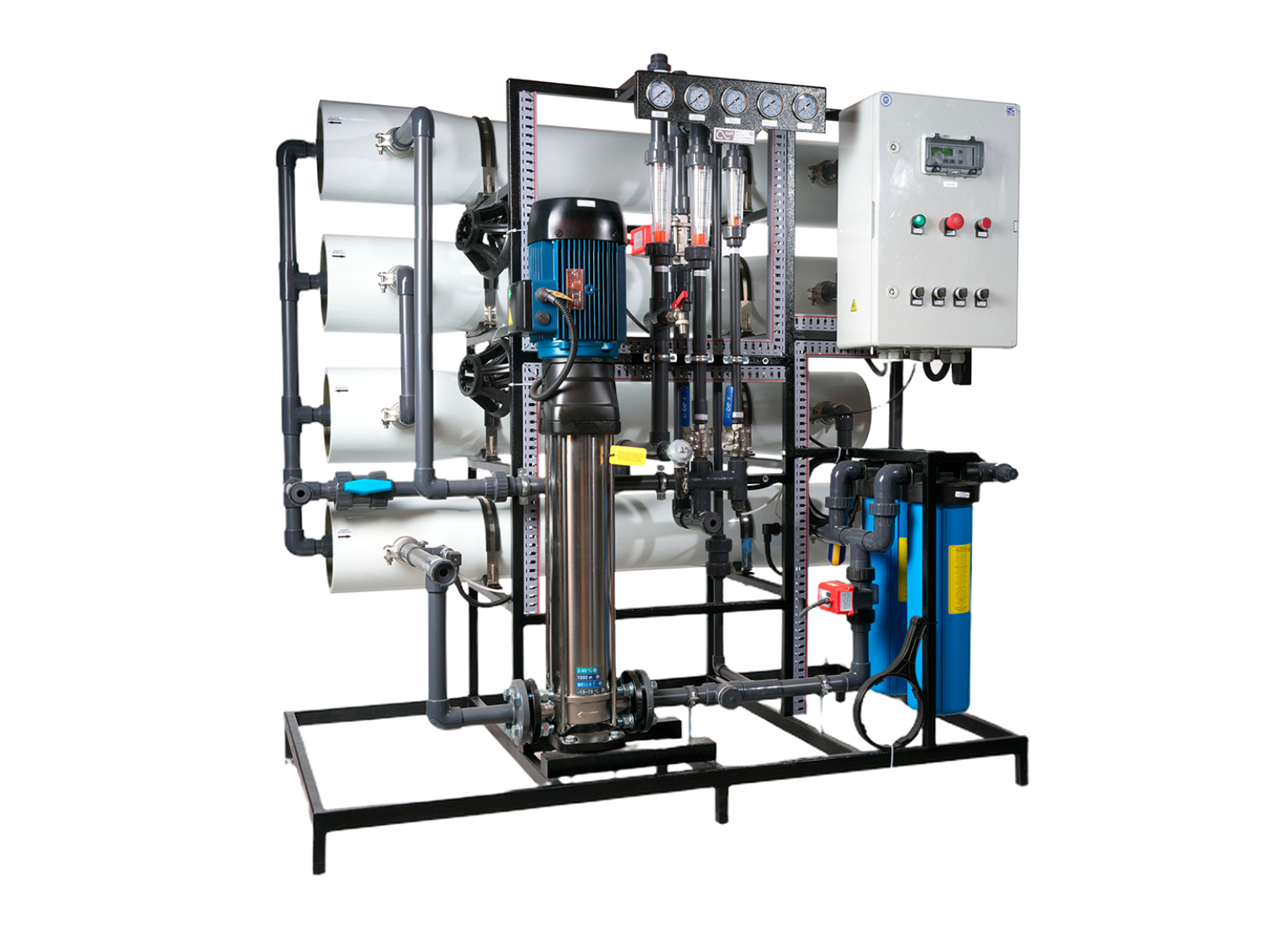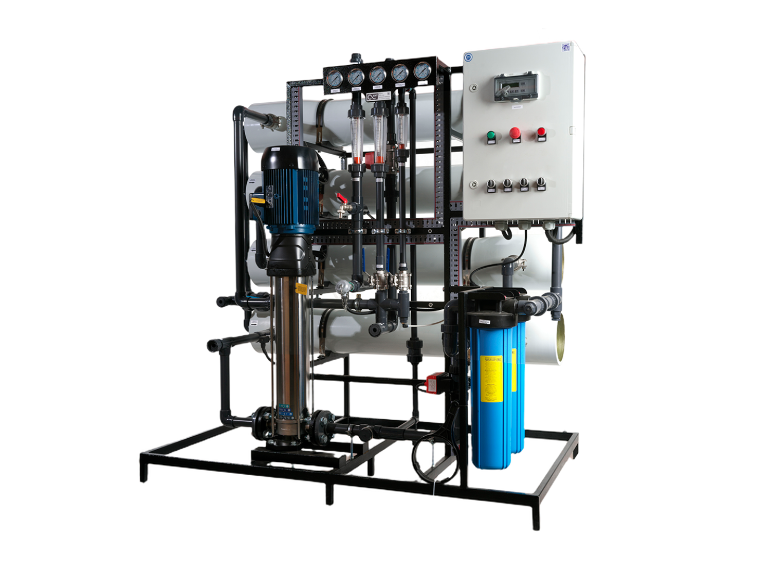 Промышленные системы обратного осмоса серии RO предназначены для деминерализации пресной воды (степень очистки до 99 %), удаления тяжелых металлов, микробов, бактерий, органических и неорганических соединений. Типичная конверсия для подземной и поверхностной воды пресного типа составляет до 75 %.