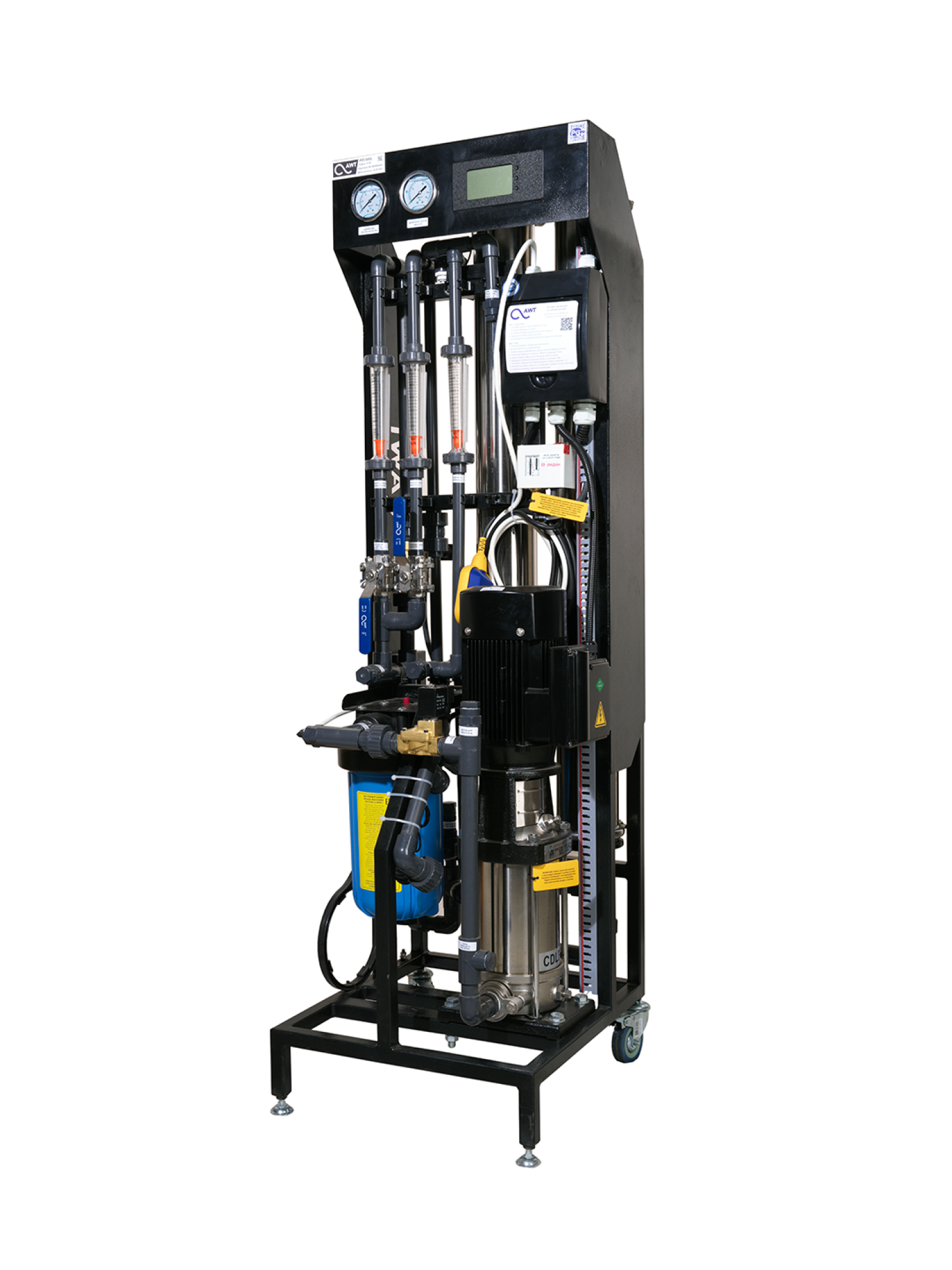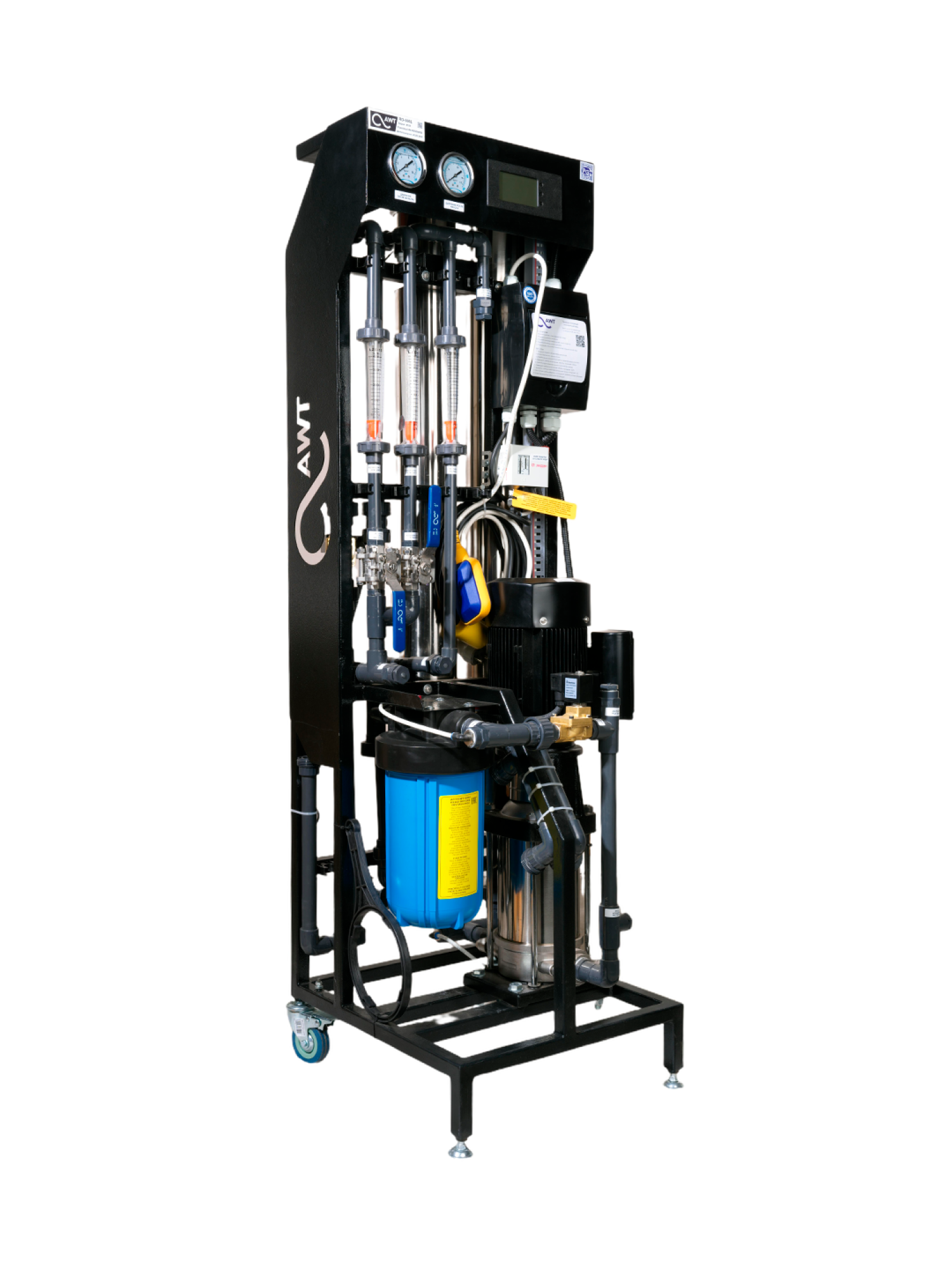 Коммерческие системы обратного осмоса серии AWT RO предназначены для глубокой доочистки воды хозяйственно-питьевого назначения, а также природных вод. Обеспечивают снижение общей минерализации, удаление солей жесткости, тяжелых металлов, органических веществ, бактерий и вирусов. Качество очищенной воды соответствует нормам СанПиН 1.2.3685–21.Типичная конверсия для подземной и поверхностной воды пресного типа составляет от 60% до 75% (соотношение пермеат : концентрат от 3:2 до 3:1).