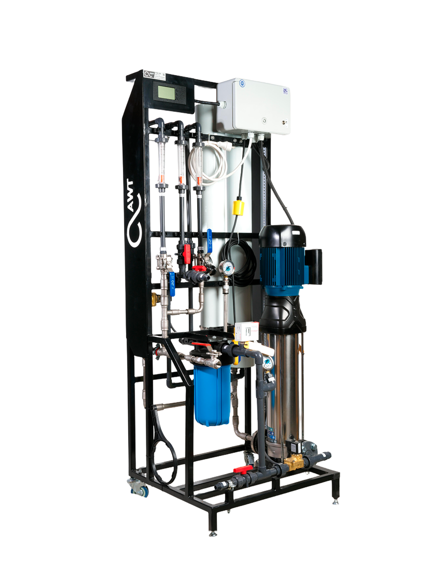 Системы работают под высоким давлением (до 2,0 МПа) с полной автоматизацией процесса. Контроллер управления с индикацией и остановкой из-за аварий по давлению и электропроводности. Предусмотрена защита насоса от «сухого хода».