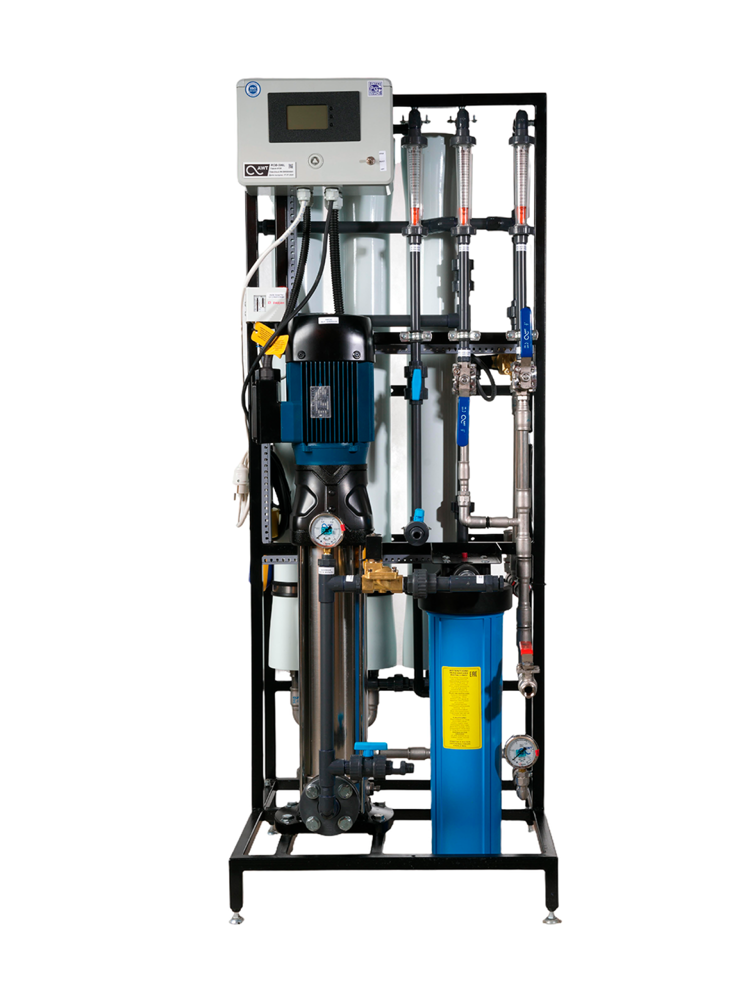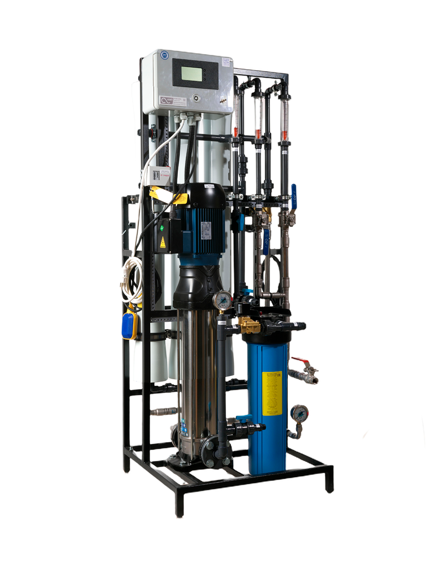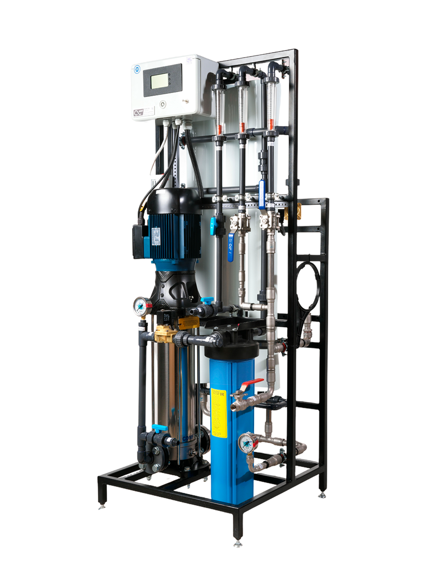 Системы работают под высоким давлением (до 2,0 МПа) с полной автоматизацией процесса. Контроллер управления с индикацией и остановкой из-за аварий по давлению и электропроводности. Предусмотрена защита насоса от «сухого хода».