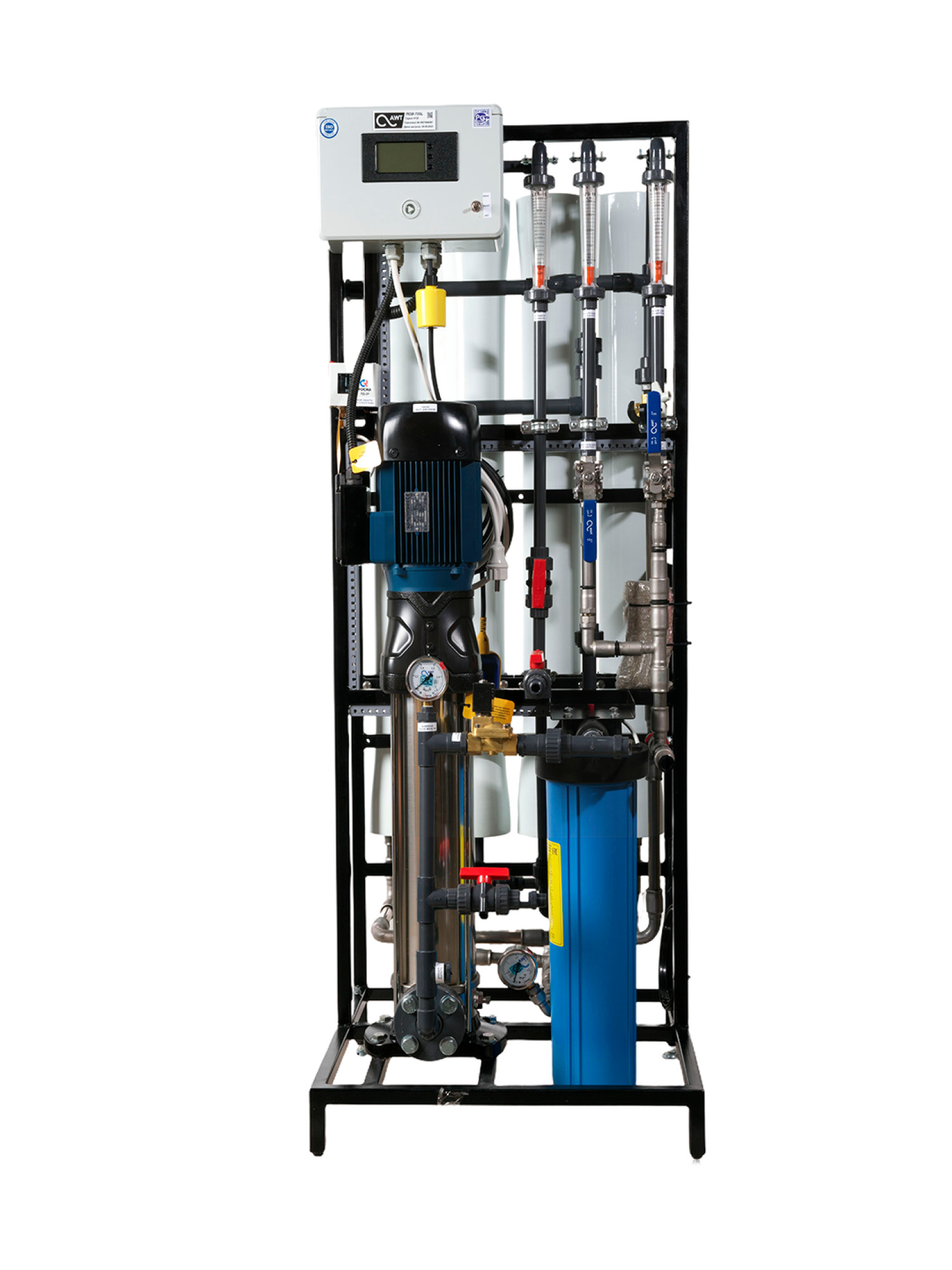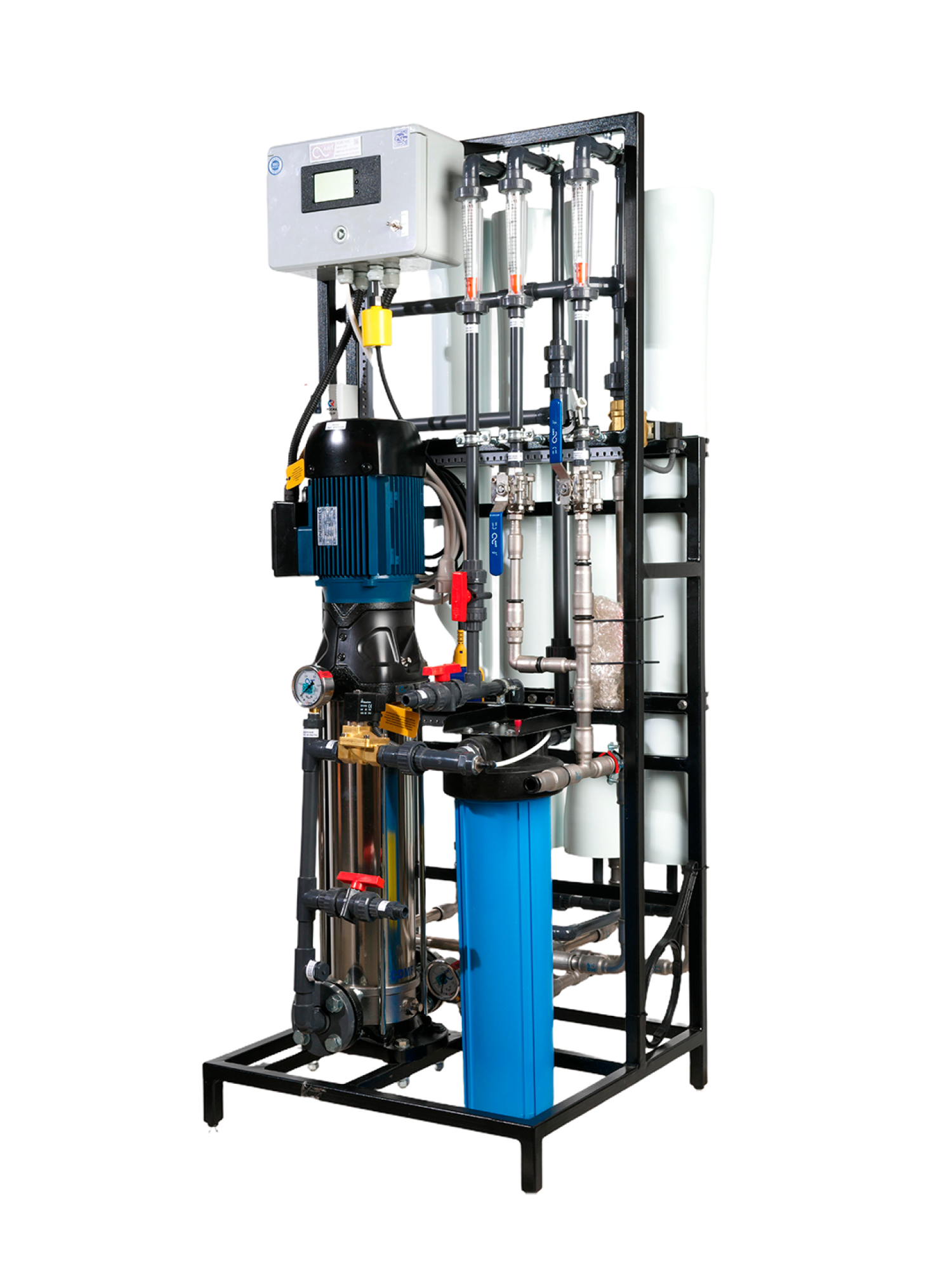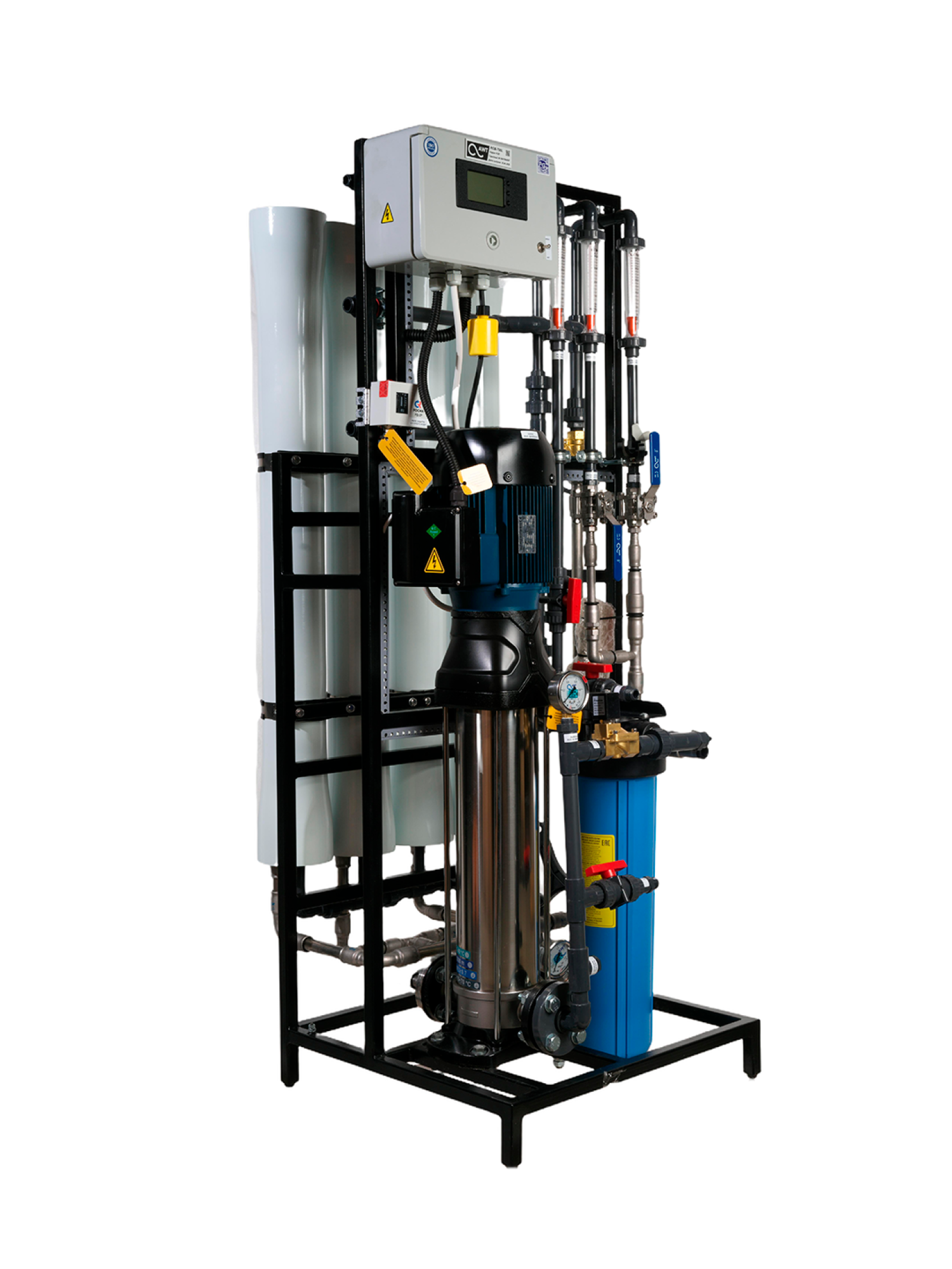 Системы работают под высоким давлением (до 2,0 МПа) с полной автоматизацией процесса. Контроллер управления с индикацией и остановкой из-за аварий по давлению и электропроводности. Предусмотрена защита насоса от «сухого хода».