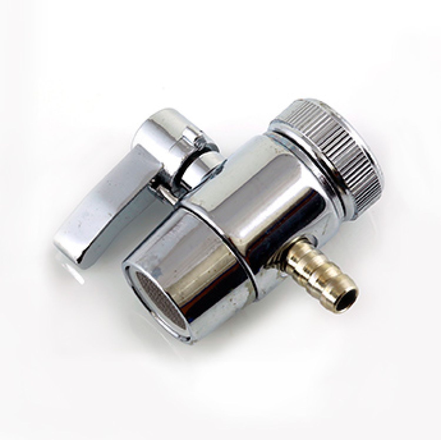 Дивертор DV-11-3BC состоит из корпуса с двухпозиционным переключателем потока воды с крана на фильтр. Внутри корпуса также установлен аэратор, место которого на кране занимает сам дивертор. Штуцер используется для присоединения к нему гибкой трубки 3/8". Для подключения дивертора к крану используется внутренняя резьба, либо внешняя за счет переходника в зависимости от модели крана.