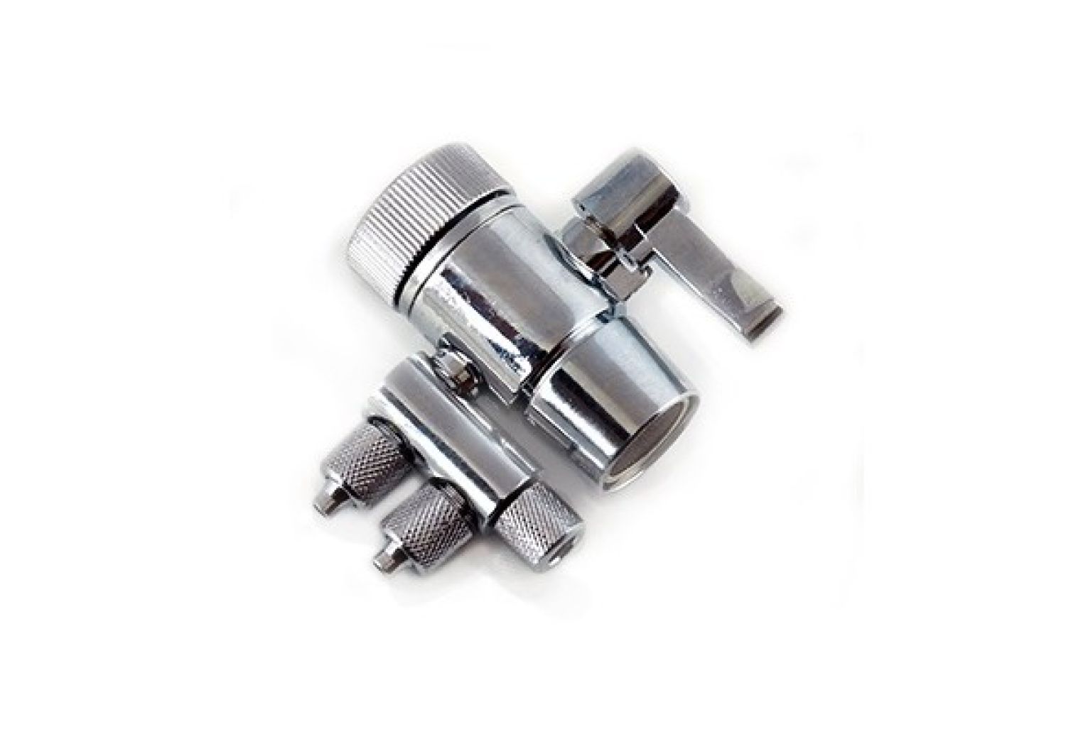 Дивертор DV-22-2BC состоит из хромированного корпуса с аэратором на конце, который насыщает воду воздухом и уменьшает ее расход. Для переключения направления потока воды с боковой стороны корпуса имеется ручка, в зависимости от положения которой вода подается напрямую потребителю или на внешнее устройство. Для подключения гибкой трубки 1/4" на корпусе имеется несколько коннекторов.