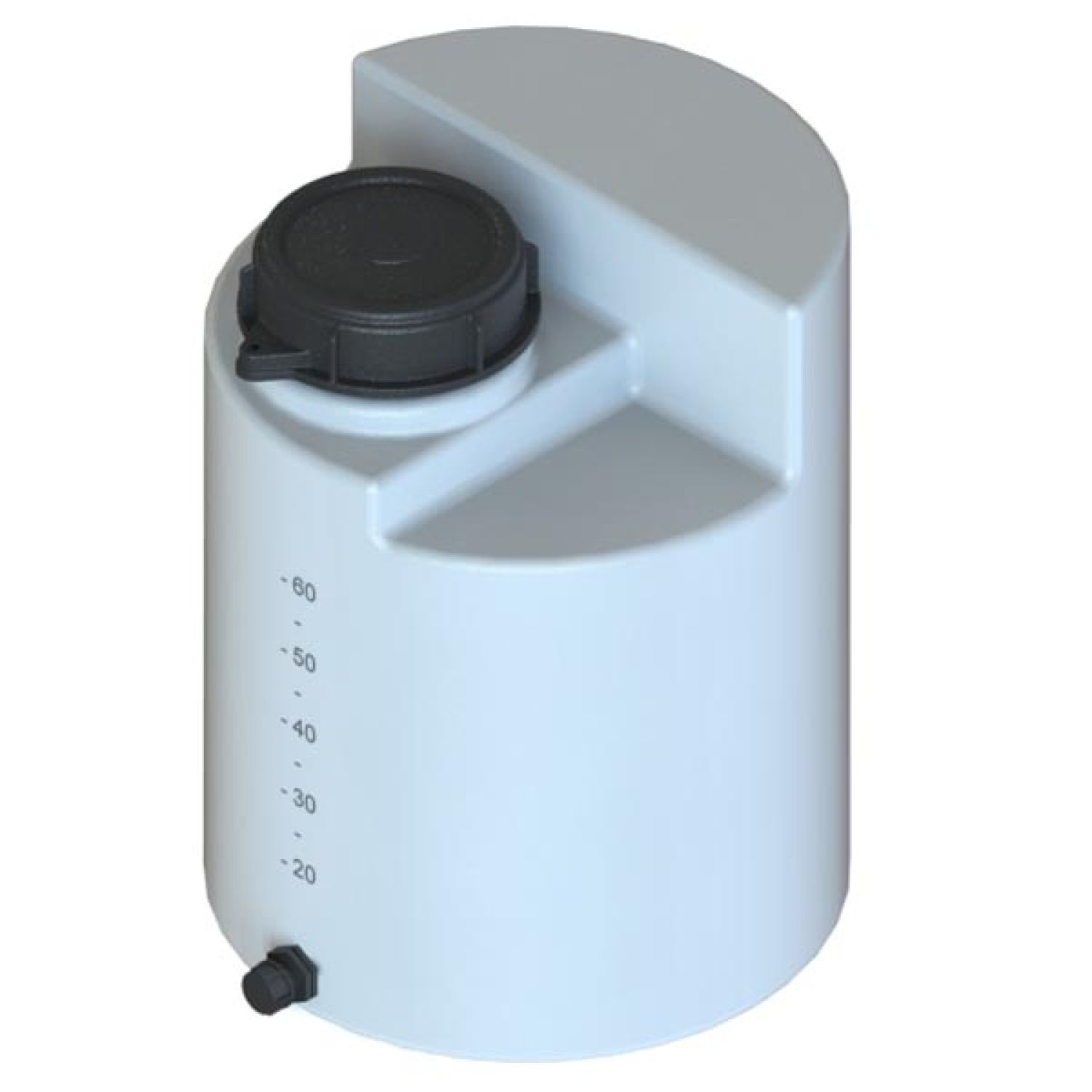 В верхней части емкости имеют плоские площадки для установки дозирующего насоса или мешалки. Комплектуются крышкой диаметром 150 мм без дыхательного клапана и имеют нижний слив на 3/4" и 1", снабжены шкалой для ориентировочного определения объема жидкости.