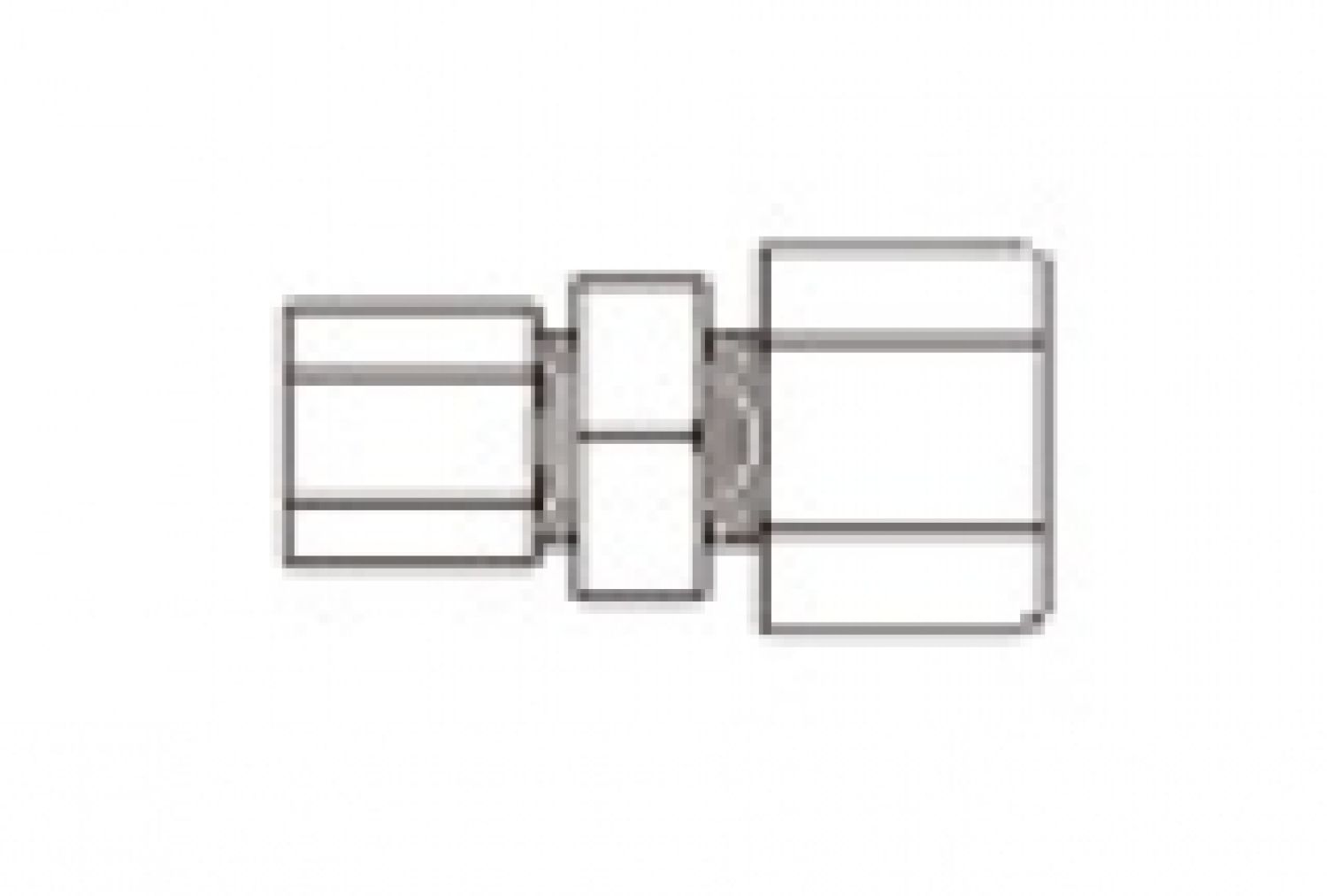 На корпусе фитинга-соединителя AquaPro JC15-4-6 имеется шестигранная поверхность для крепления при помощи ключа. На каждой из сторон соединителя на резьбу устанавливаются гайки типа JACO диаметра 1/4" и 3/8", к которым присоединяются гибкие трубки. За счет двустороннего присоединения и происходит переход с трубки одного диаметра на больший/меньший.