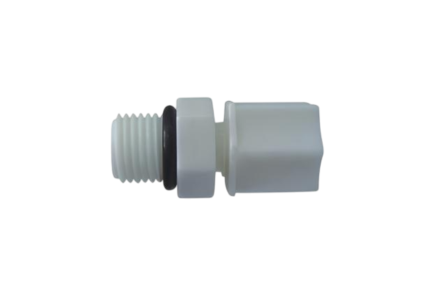 Переходник AquaPro JG10-4-4-ORING с уплотнительным кольцом применяется для перехода с резьбы на гибкую трубку при помощи быстросъемного коннектора в системах водоподготовки AquaPro.