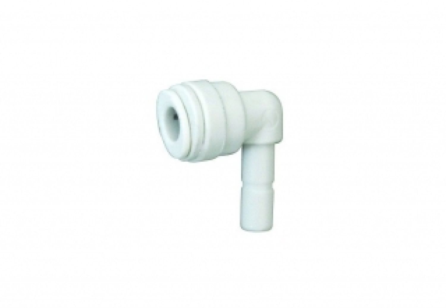 Угловой переходник AquaPro JG40-0-4 используется для подключения гибкой трубки под углом 90 градусов без ее перегиба к фитингу с коннектом John Guest.