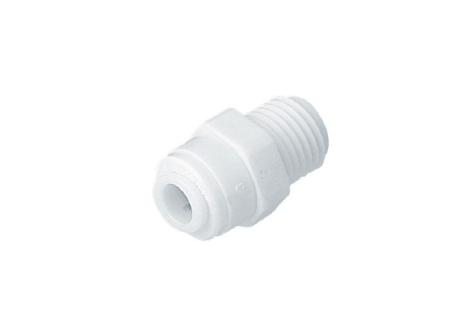 Фитинг прямой DM-fit AMCBT0707W используется для перехода с резьбы на гибкую трубку в различных элементах систем фильтрации (корпуса фильтров или обратноосмотических мембран, бустерные насосы).
