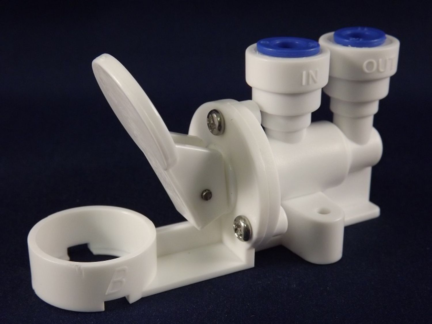 Контроллер протечки воды. Цанговые зажимы 1/4 дюйма (для трубок с наружным диаметром 6,35 мм). Ниша под таблетку для впитывания влаги размером 10х20 мм. Монтажная площадка 22х80 мм.