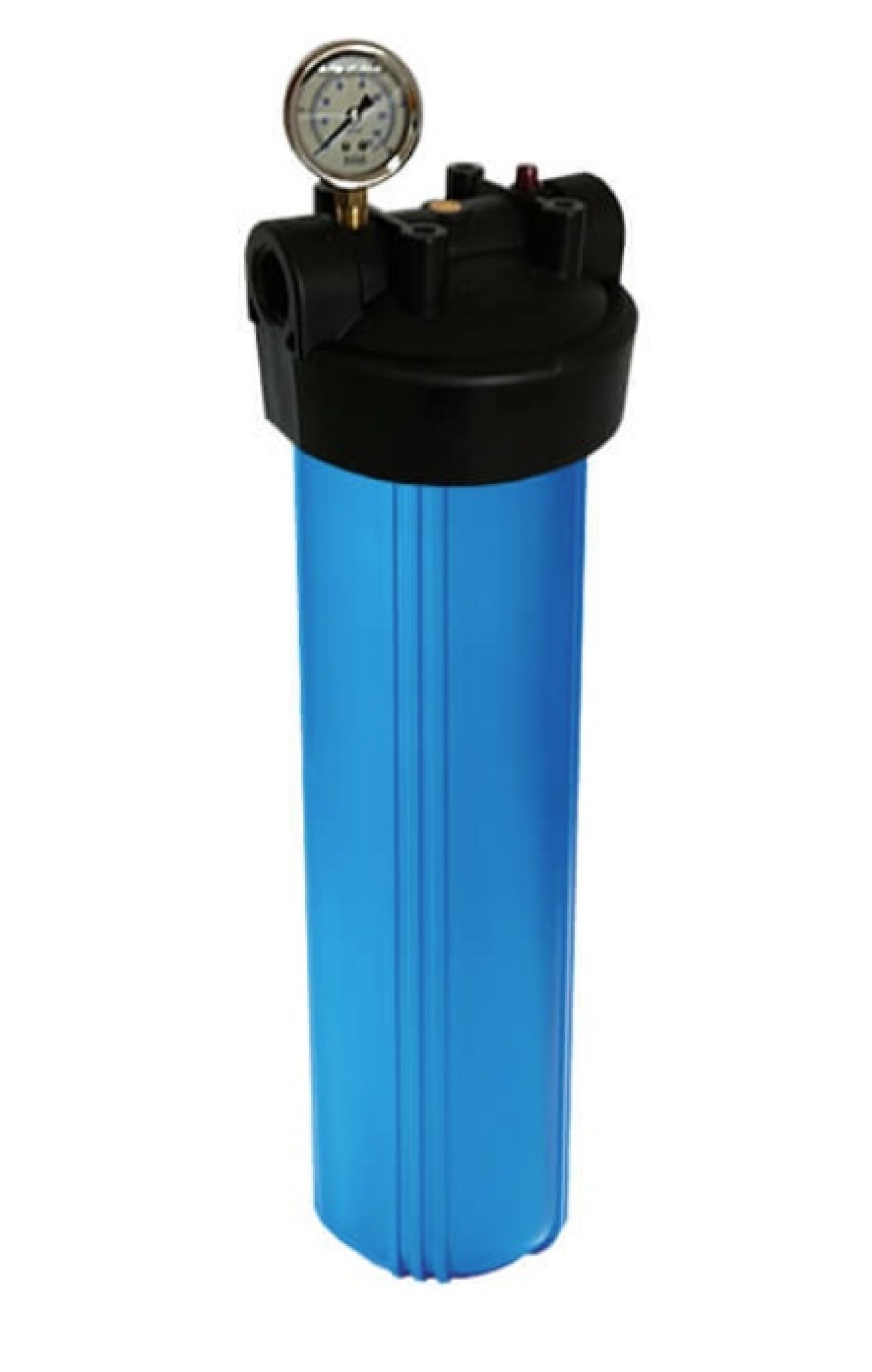 20" Корпус фильтра Биг Блю с манометром с входом 1 “ и сбросом давления. Служит для механической чистки воды от вредных примесей, песка, ила. Используются для большой производительности.