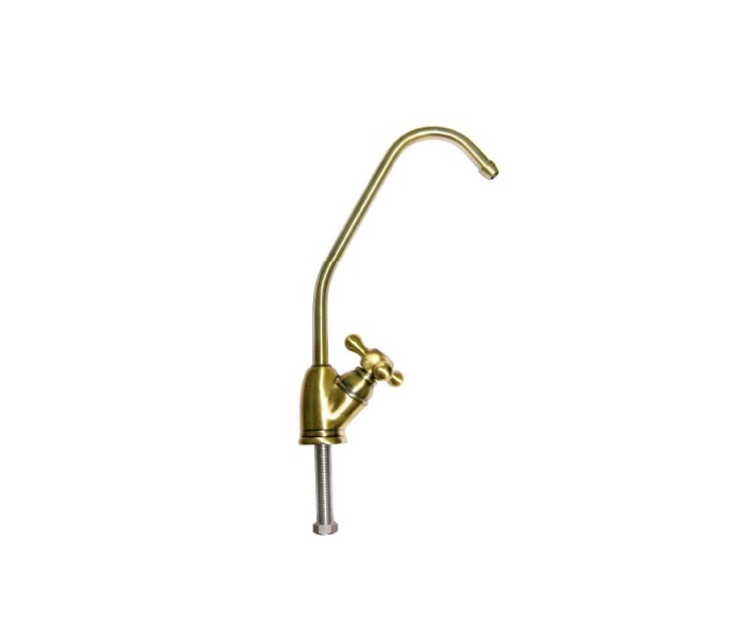 Кран F-06-2BC-L B устанавливается на раковину рядом с системой очистки и подключается к ней при помощи фитинга и гибкой трубки. На основании крана имеется резиновая прокладка, защищающая место установки на раковину от протечки. Кран может вращаться вокруг своей оси и имеет керамический переключатель подачи очищенной воды. Покрытие крана имитирует бронзу.