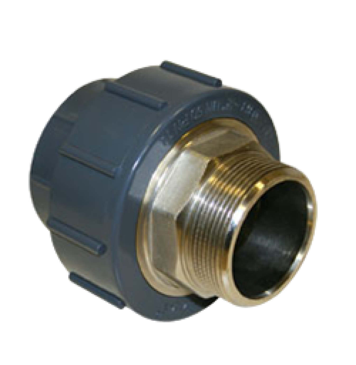 Разборные клеевые муфты ПВХ с наружной резьбой используют для обвязки оборудования.
