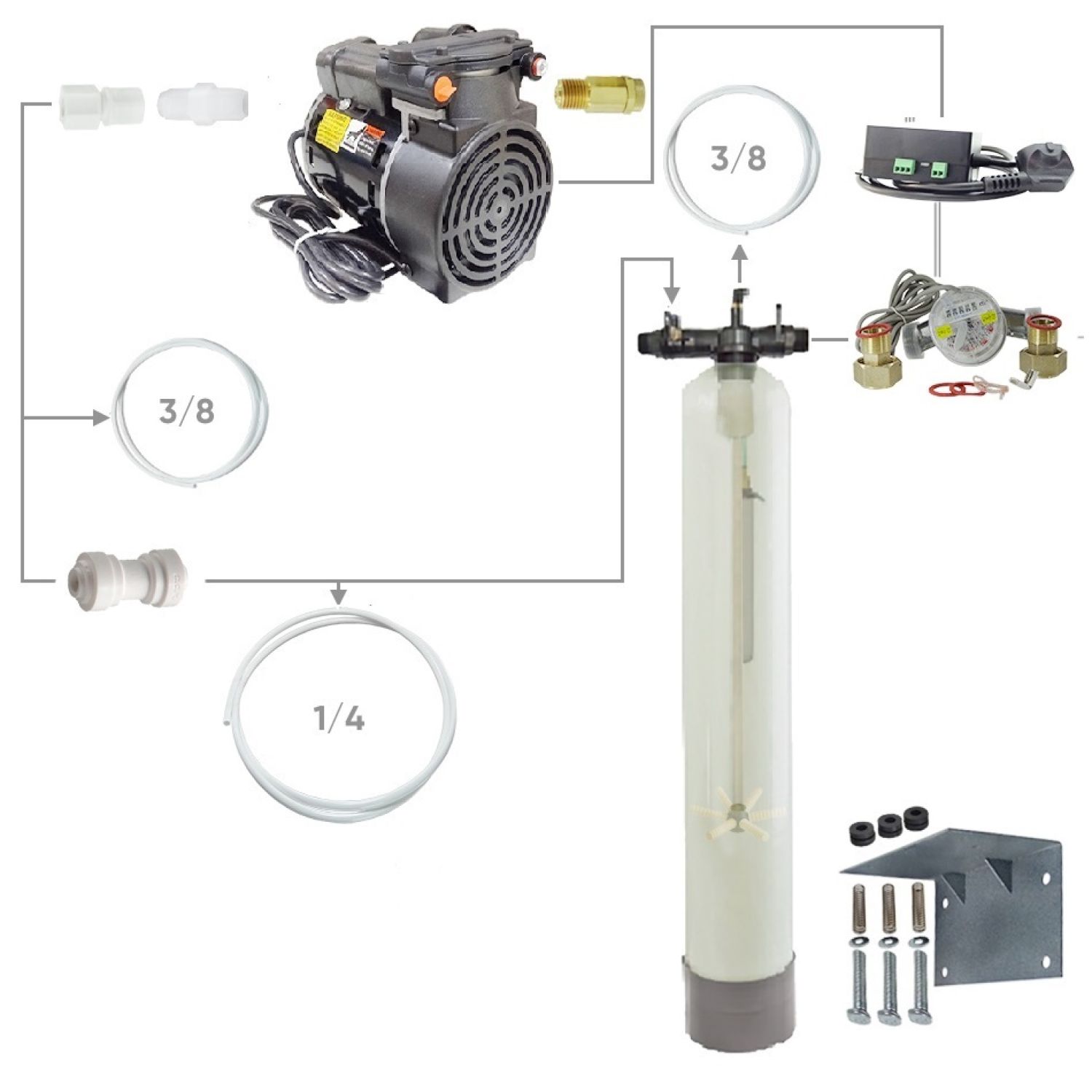 Напорная аэрация подразумевает отсутствие потери давления в трубопроводе. При напорной аэрации воды воздух при помощи компрессора или эжектора подается в трубопровод. Далее водо-воздушная смесь подается в контактную камеру: напорный корпус или на статический миксер, обеспечивающий необходимое время контакта. Из контактной камеры вода поступает на систему фильтрации практически без потери исходного давления. При использовании напорной аэрации воды в верхней части контактной камеры устанавливают воздухосбросный клапан для удаления лишнего воздуха и удаленных из воды газов. Контактная камера, распределительный оголовок с трубками и восдухосбросный клапан в сборе называются аэрационной колонной. Brio 2000 – аппаратура, позволяющая автоматизировать пуск и останов электронасоса в зависимости от понижения давления (открытие кранов) и от остановки потока в системе (закрытие кранов), на которой она установлена. Brio 2000 M выполняет важную функцию останова насоса при отсутствии воды, защищая его от вредной работ