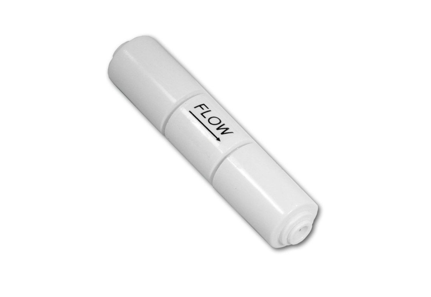 Регулятор дренажа FR-350P-EZ изготовлен из пластика в виде цилиндра с двумя быстросъемными коннекторами, к которым присоединяется гикая трубка, идущая от обратноосмтической мембраны к дренажному сливу. Внутри корпус имеет суженное сечение, за счет чего и образуется ограничение потока, сливающегося в дренаж.