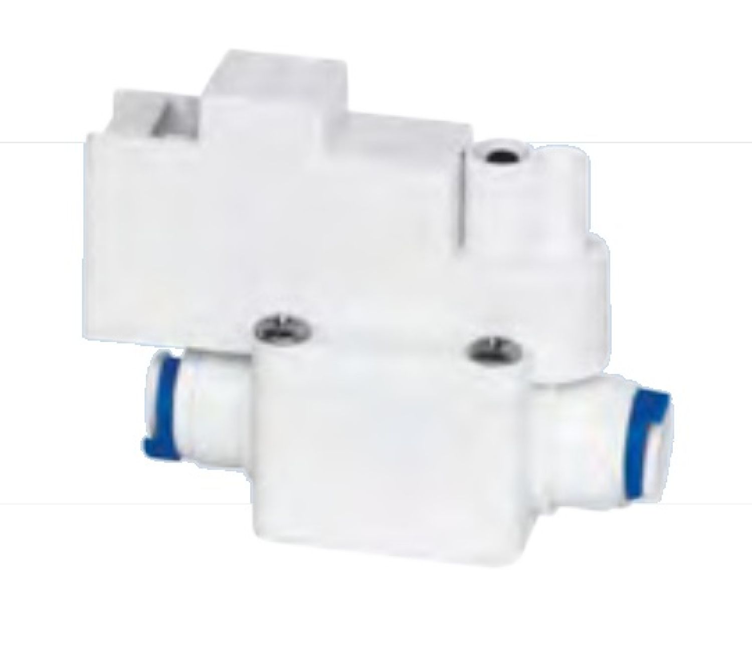 Реле для RO-систем QT-30 Naturewater представляет собой пластиковый корпус с двумя резьбовыми входами диаметра 1/4" для подключения трубок системы фильтрации и разъема для соединения с повысительным насосом.
