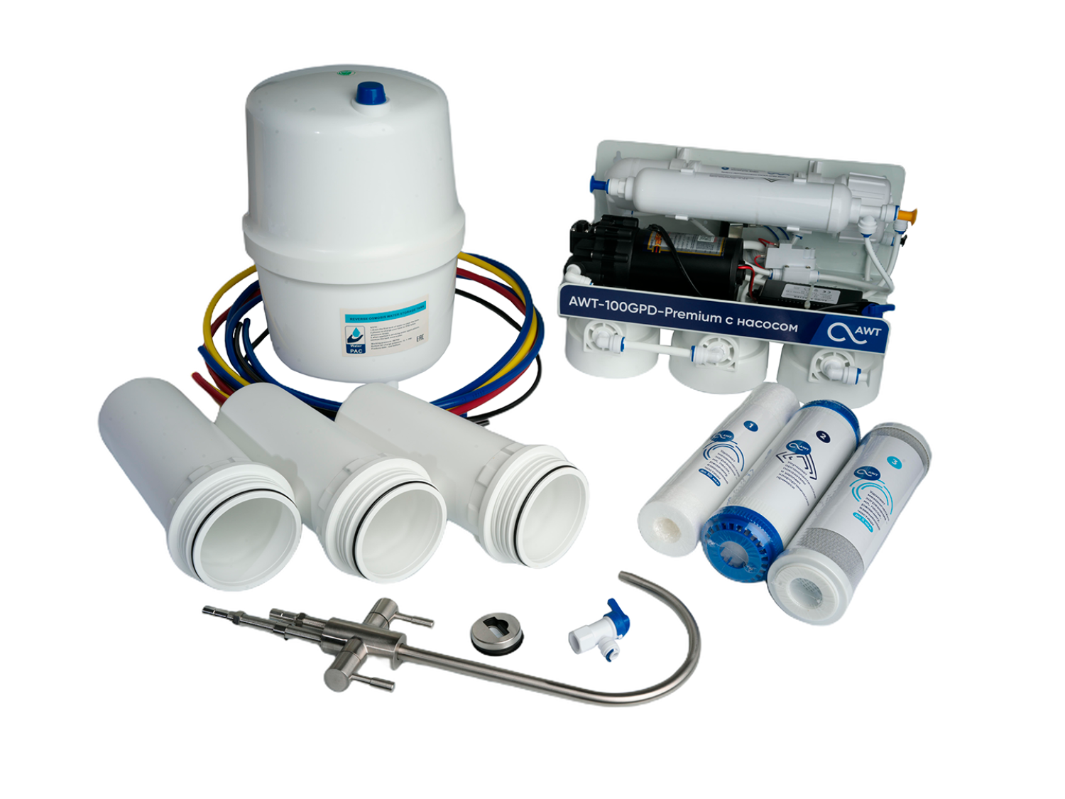 - Бустерный насос 100 GPD (вместе с блоком питания на 24 V DC)