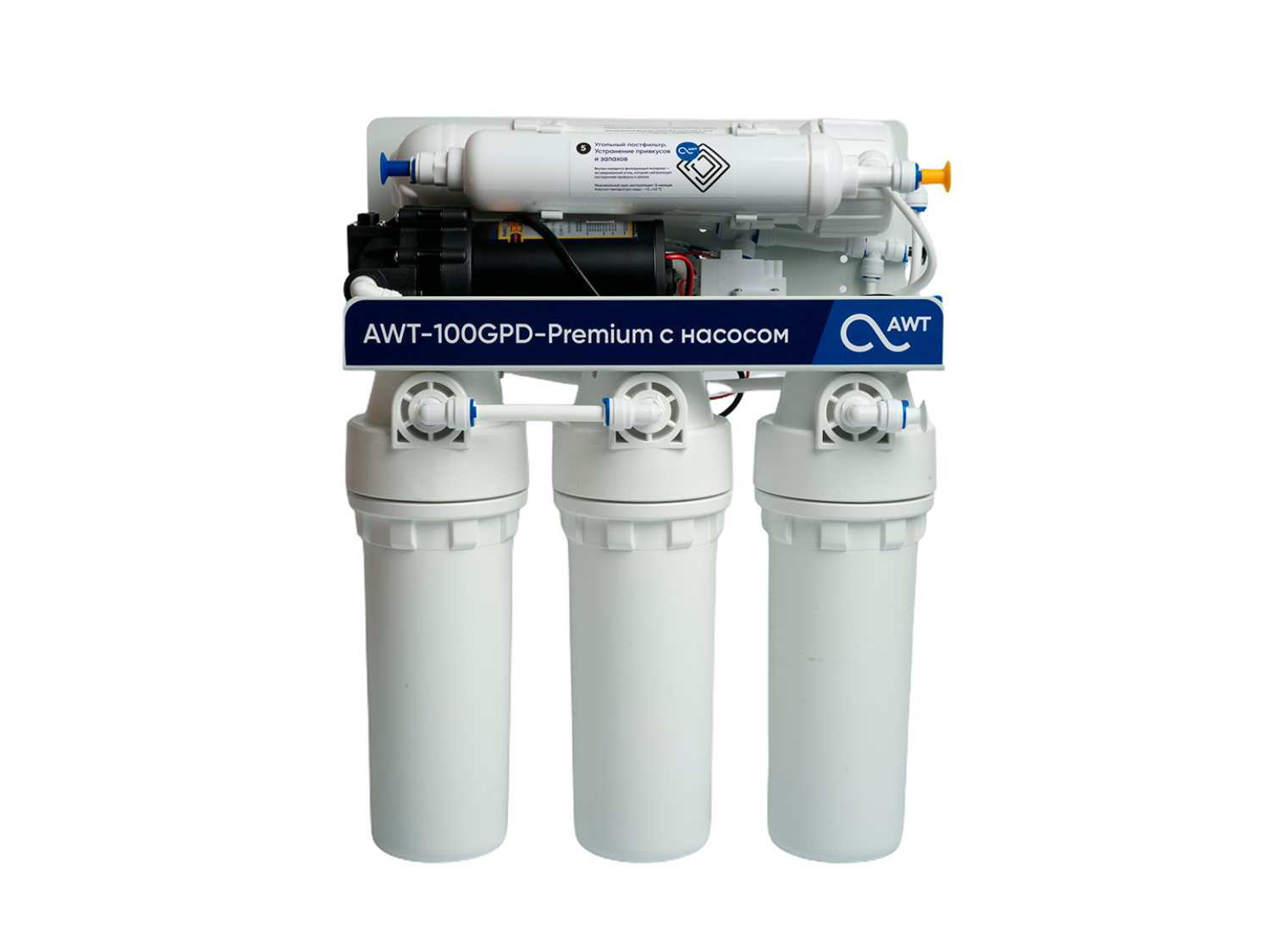 Система очистки воды AWT Premium RO100-А1 (с насосом) оснащена высокоэффективными фильтрами сорбции и обратноосмотической мембраной, через которую проникают только молекулы воды и кислорода. Система оснащена повышающим насосом, который обеспечит необходимое давление на мембране. Благодаря многостадийной очистке, вы можете эффективно очищать воду от вирусов, соли и вредоносных металлов. При правильном обслуживании система фильтрации обеспечит Вас качественной и вкусной питьевой водой на долгие годы.