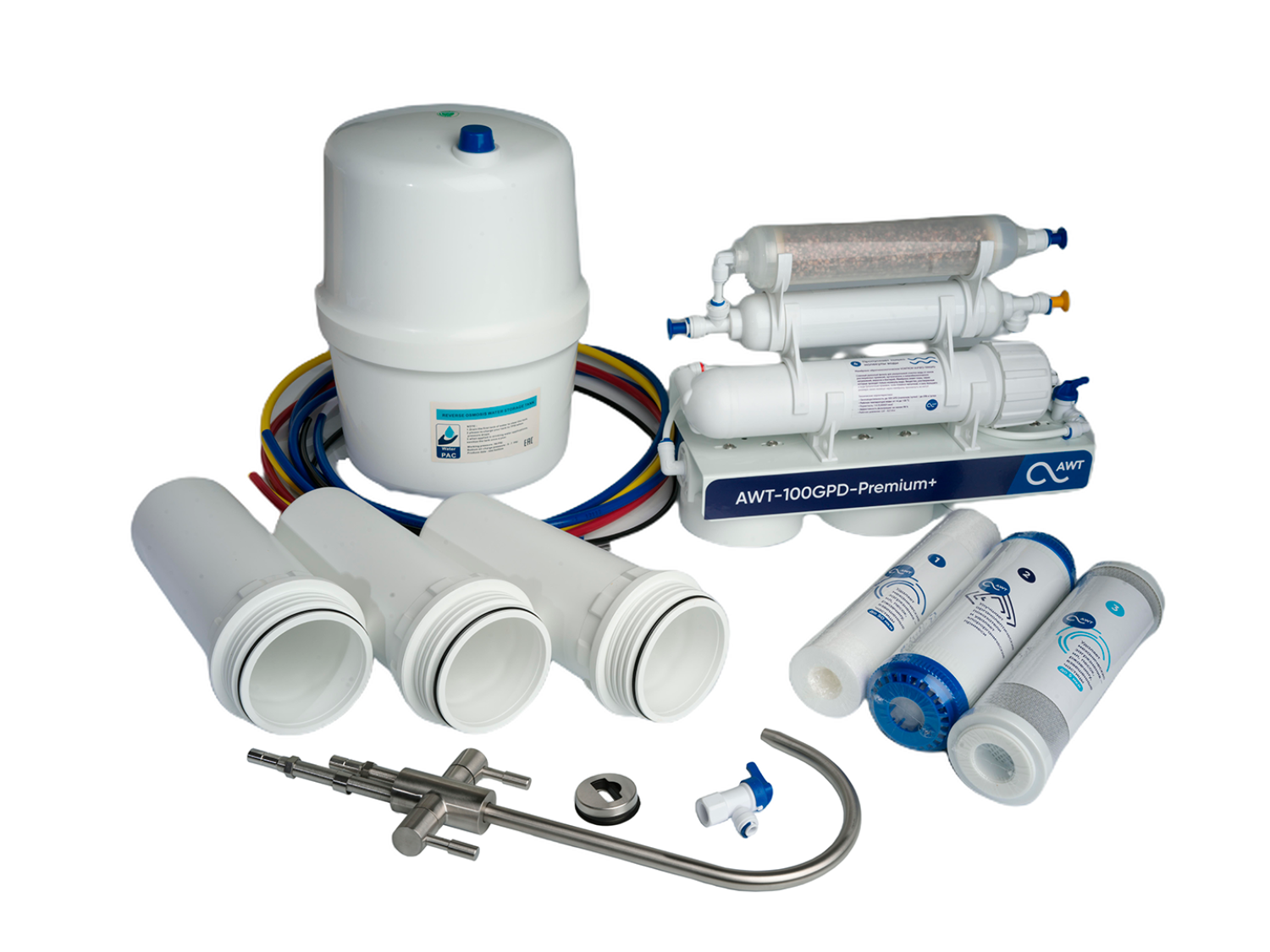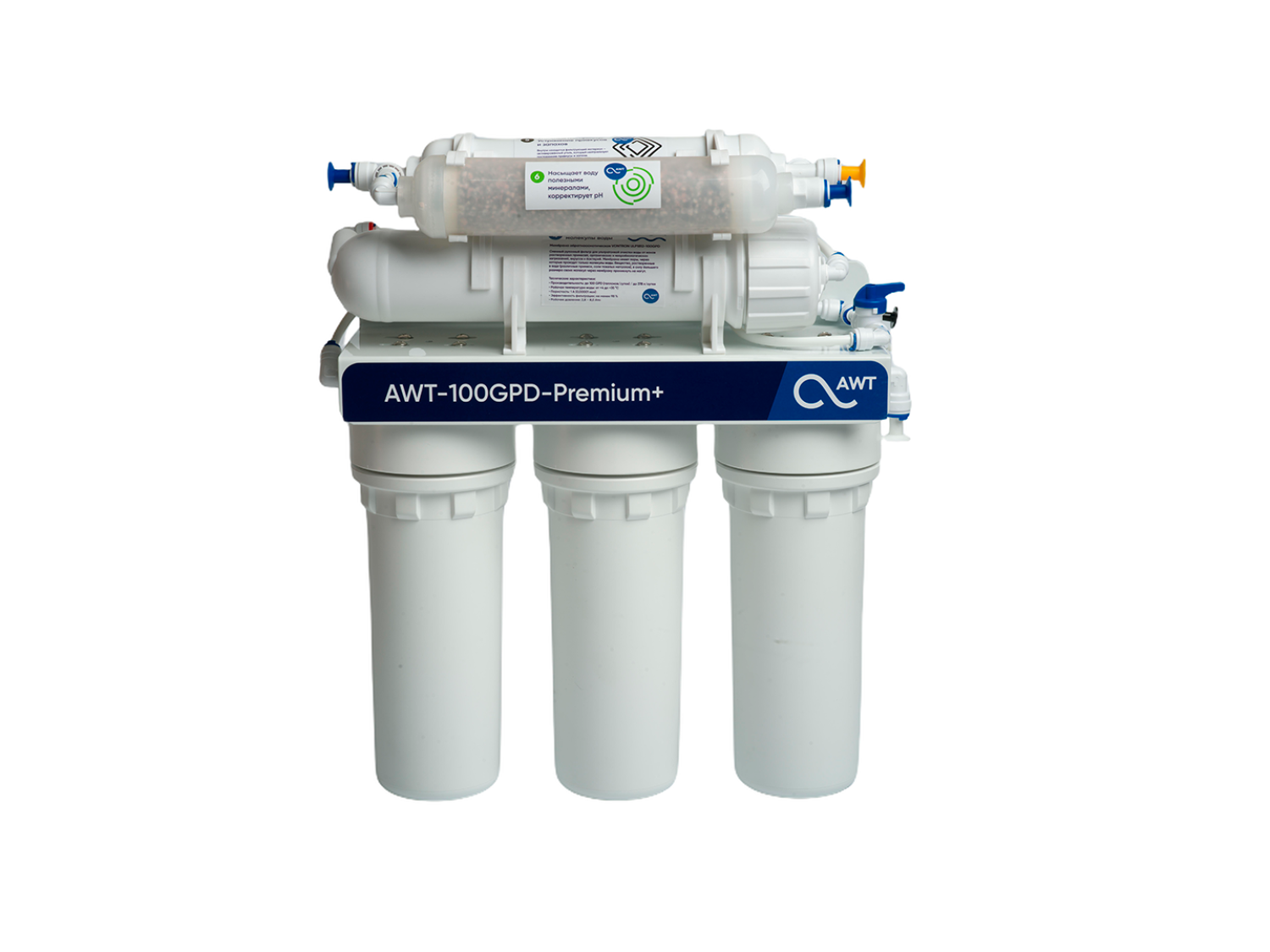 Система очистки воды AWT Premium RO100-NP35 (с минерализатором) оснащена высокоэффективными фильтрами сорбции и обратноосмотической мембраной, через которую проникают только молекулы воды и кислорода. Благодаря многостадийной очистке, вы можете эффективно очищать воду от вирусов, соли и вредоносных металлов. При правильном обслуживании система фильтрации обеспечит Вас качественной и вкусной питьевой водой на долгие годы.