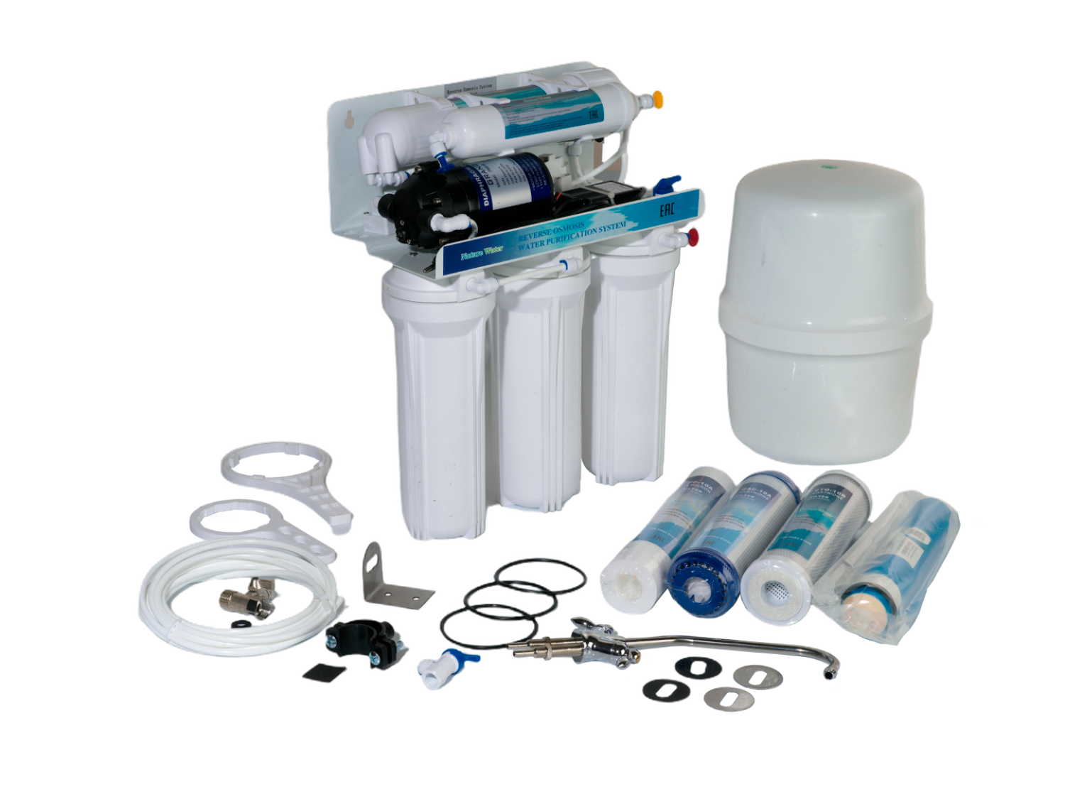 Система очистки воды AWT NatureWater оснащена высокоэффективными фильтрами сорбции и обратноосмотической мембраной, через которую проникают только молекулы воды и кислорода. Благодаря многостадийной очистке, вы можете эффективно очищать воду от вирусов, соли и вредоносных металлов. При правильном обслуживании система фильтрации обеспечит Вас качественной и вкусной питьевой водой на долгие годы.