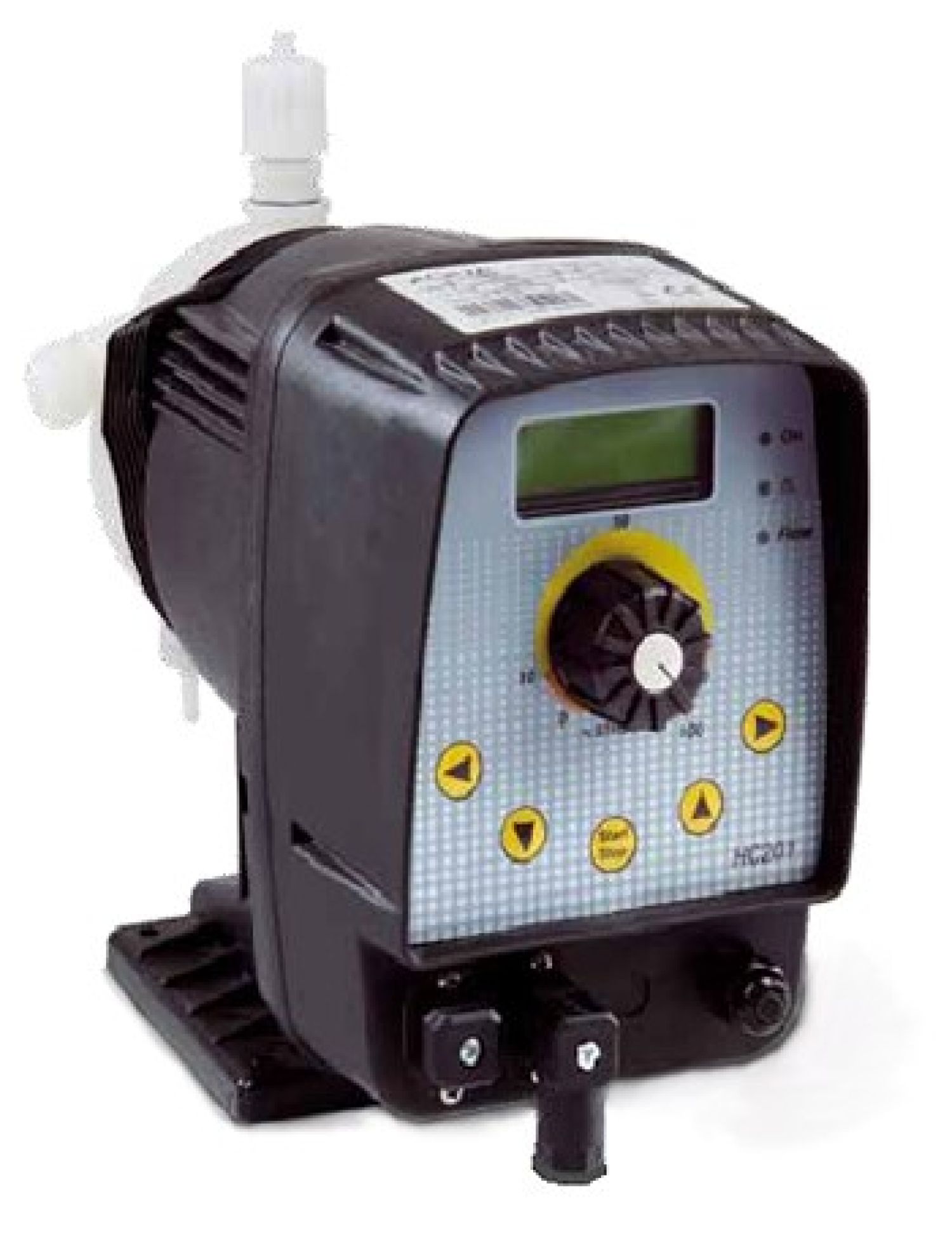 Многофункциональный дозирующий насос. Механическая регулировка впрыска. Микропроцессор, цифровое управление и удобный дисплей. Пропорциональное дозирование по средством цифрового сигнала от импульсного водомера или от датчика 4-20А. Постоянная производительность с возможностью регулирования от 0-120 впрысков в минуту. Минимум 1 импульс в 10 мин. Управляется таймером 24 часа\7дней.