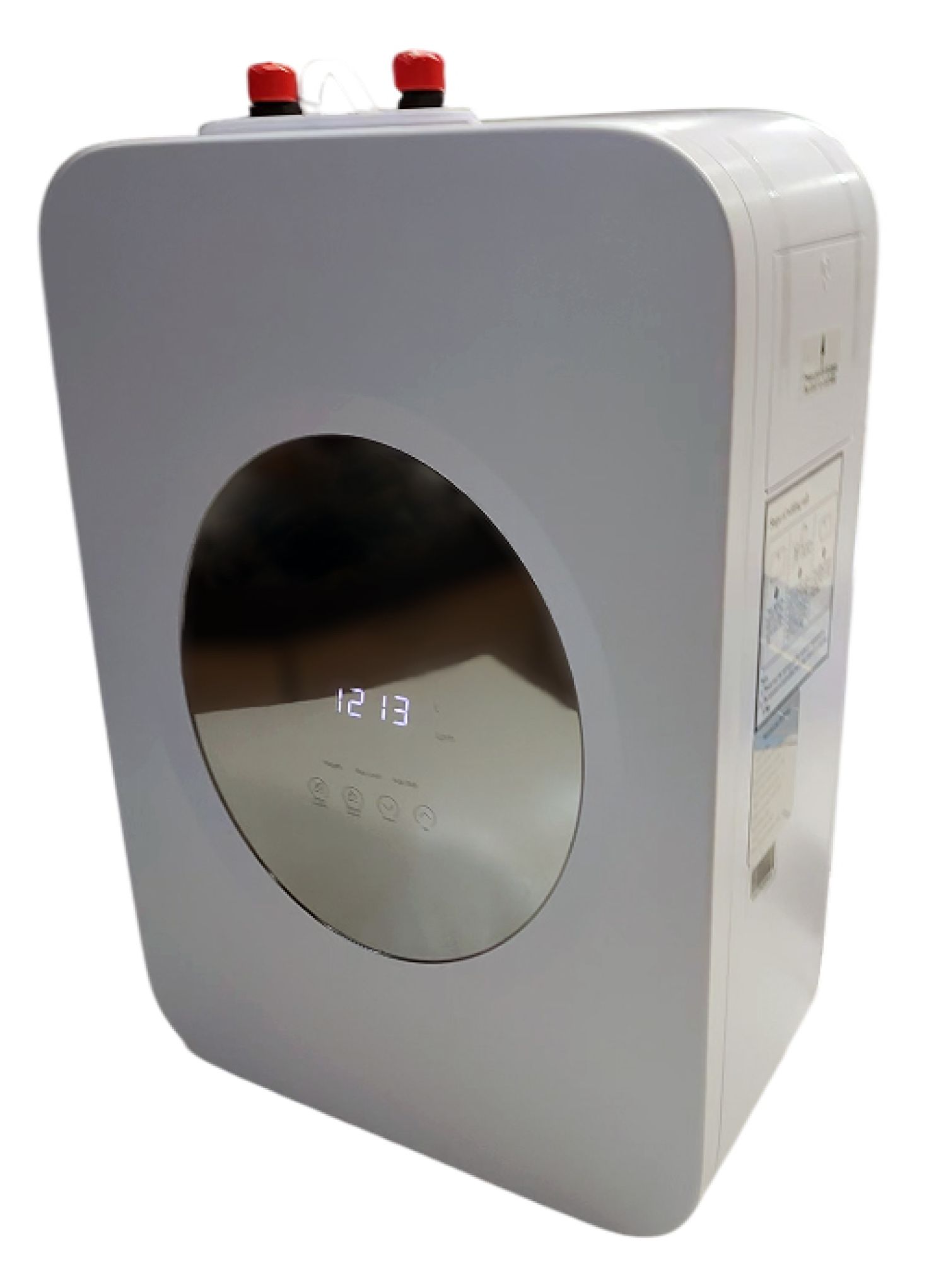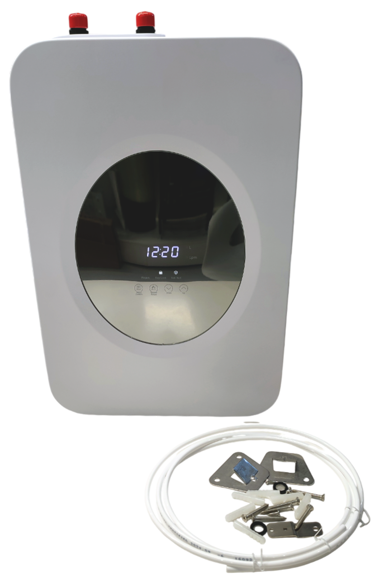 Настенный бытовой умягчитель воды серии M8. Принцип действия — ионный обмен для снижения жёсткости, основная цель — защита водонагревателя и сантехники от накипи. Комплектуется баком для смолы (4.8 л) и съёмным контейнером для таблетированной соли. Оснащён электронным управлением с индикацией и функцией автоматической регенерации по таймеру.