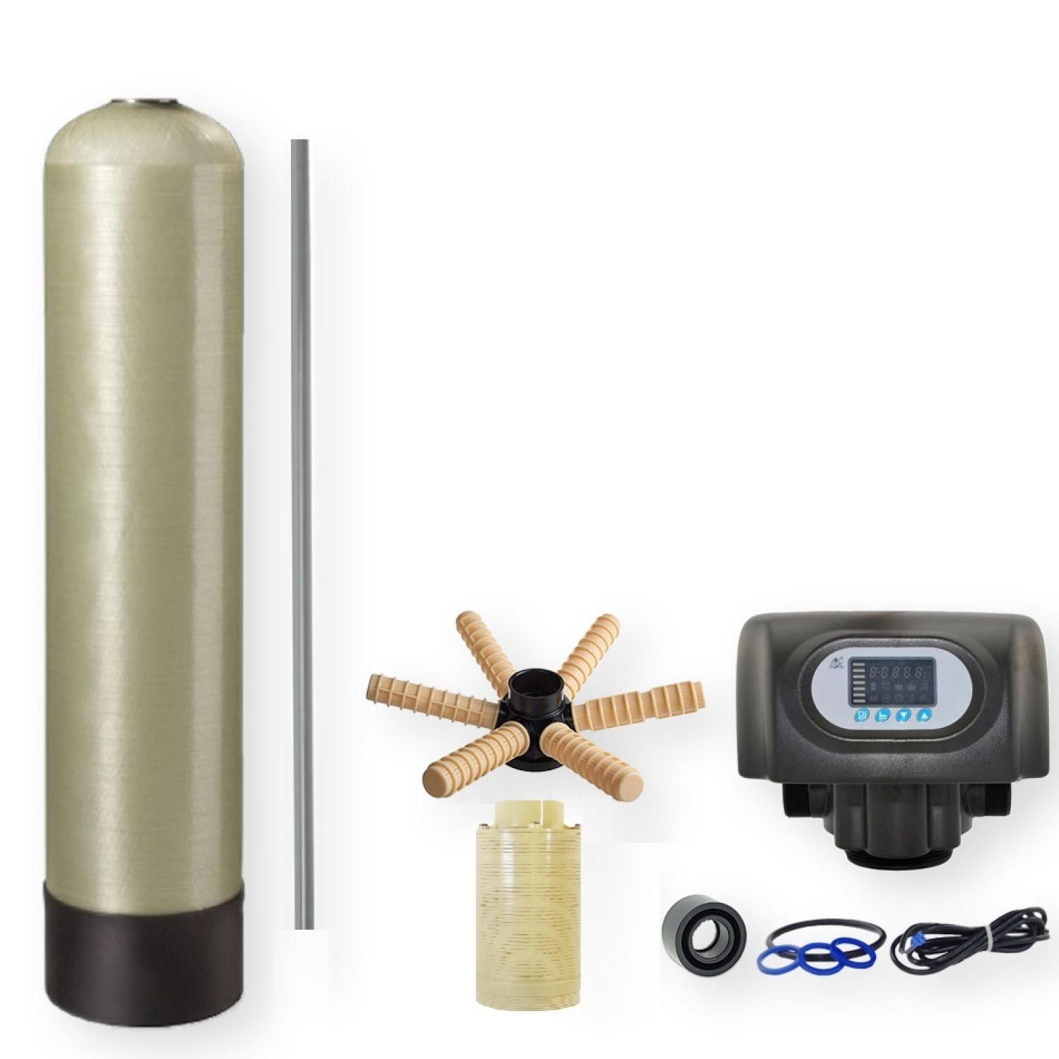 Установки для очистки воды Предназначены для удаления из воды до санитарных норм: - железа общего; - марганца; - сероводорода; - мутности, цветности. Описание: установка состоит из корпуса фильтра, выполненного из стеклопластика внутри ламинированного полиэтиленом, автоматического клапана управления, фильтрующей среды, поддерживающего слоя гравия, дренажно-распределительной системы, бака для приготовления регенерационного раствора. Принцип действия: Напорные фильтры с зернистой фильтрующей средой, непосредственно окисляющей растворенное железо, марганец и сероводород, которые, проходя сквозь загрузку, переходят в нерастворимую форму и выпадают в осадок. Осадок задерживается в слое фильтрующей загрузки и в дальнейшем вымывается в дренаж при обратной промывке. После окончания фильтроцикла производится регенерация (восстановление фильтрующей способности) загрузки путем ее взрыхления (обратная промывка). Периодичность регенераций зависит от суммарного содержания в воде железа, марганца и сероводор