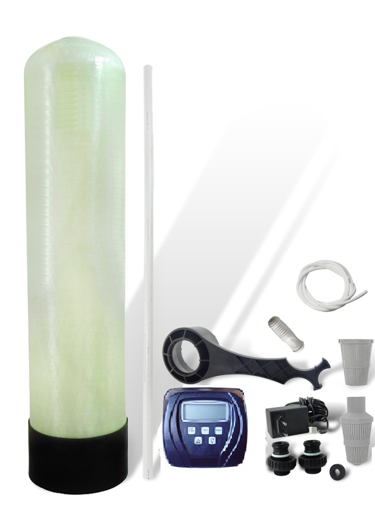 Установки для очистки воды Предназначены для удаления из воды до санитарных норм: - железа общего; - марганца; - сероводорода; - мутности, цветности. Описание: установка состоит из корпуса фильтра, выполненного из стеклопластика внутри ламинированного полиэтиленом, автоматического клапана управления, фильтрующей среды, поддерживающего слоя гравия, дренажно-распределительной системы, бака для приготовления регенерационного раствора, воздушного эжектора, предназначенного для подсоса воздуха внутрь корпуса фильтра и реагентной трубки. Принцип действия: Напорные фильтры с зернистой фильтрующей средой, непосредственно окисляющей растворенное железо, марганец и сероводород, которые, проходя сквозь загрузку, переходят в нерастворимую форму и выпадают в осадок. Осадок задерживается в слое фильтрующей загрузки и в дальнейшем вымывается в дренаж при обратной промывке. Через эжектор осуществляется подсос воздуха внутрь корпуса фильтра, в следствие чего формируется воздушный пузырь, ускоряющий процессы окисления