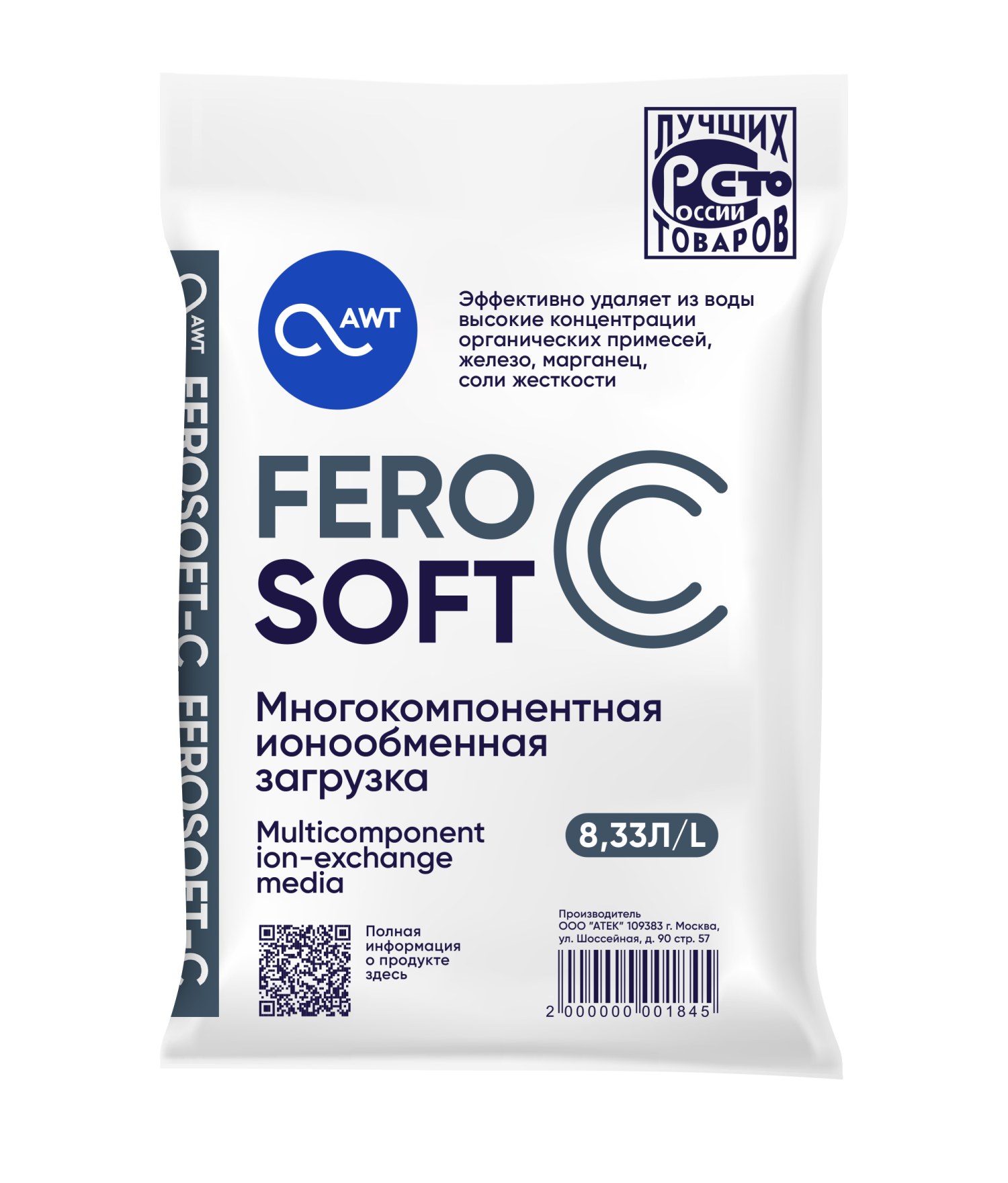 FeroSoft-C — поликомпонентный фильтрующий материал на основе смеси ионообменных смол (катионитов и анионитов) в Na+ и Cl-форме с добавлением полимеров. Используются для комплексного удаления из воды ионов жесткости, железа, марганца, снижения концентрации органических соединений. Работа материала основана на принципах ионного обмена.